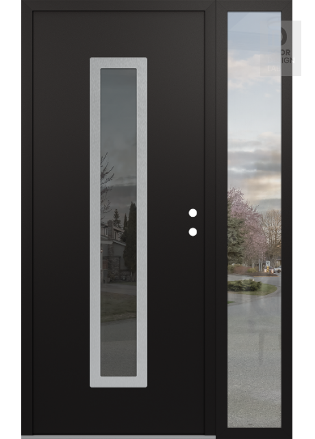 Modern Steel Front Door DIAMOND A11 52" X 80" BLACK/BLACK MIRRORED GLASS PANEL STAINLESS STEEL RHI WITH SIDELITE CLEAR GLASS
