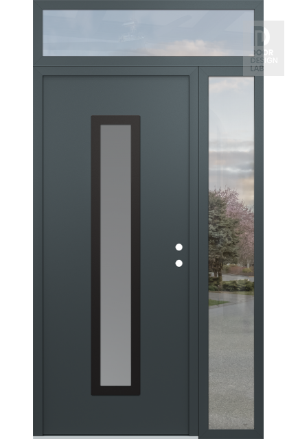 Modern Steel Front Door DIAMOND A11 52" X 96" ANTHRACITE/ANTHRACITE FROSTED GLASS PANEL BLACK RHI WITH SIDELITE AND TRANSOM CLEAR GLASS