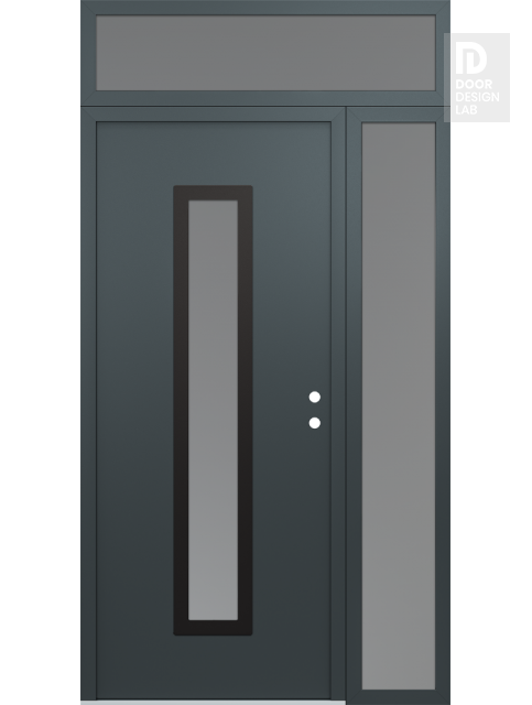 Modern Steel Front Door DIAMOND A11 52" X 96" ANTHRACITE/ANTHRACITE FROSTED GLASS PANEL BLACK RHI WITH SIDELITE AND TRANSOM FROSTED GLASS