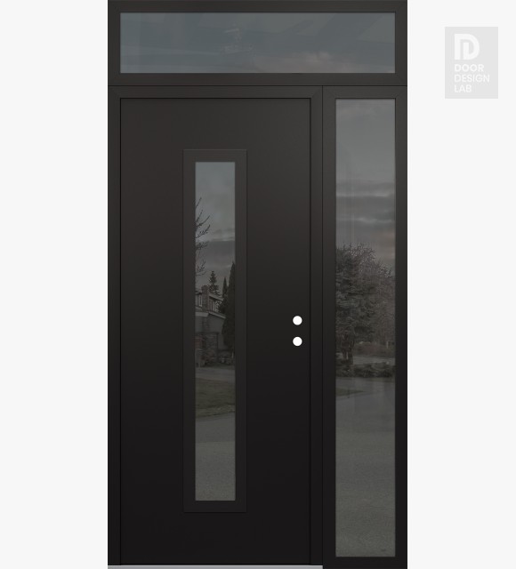 Modern Steel Front Door DIAMOND A11 52" X 96" BLACK/BLACK MIRRORED GLASS PANEL BLACK RHI WITH SIDELITE AND TRANSOM MIRRORED GLASS
