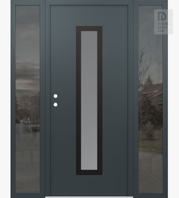 Modern Steel Front Door DIAMOND A11 60" X 80" ANTHRACITE/ANTHRACITE FROSTED GLASS PANEL BLACK LHI WITH 2 SIDELITES MIRRORED GLASS