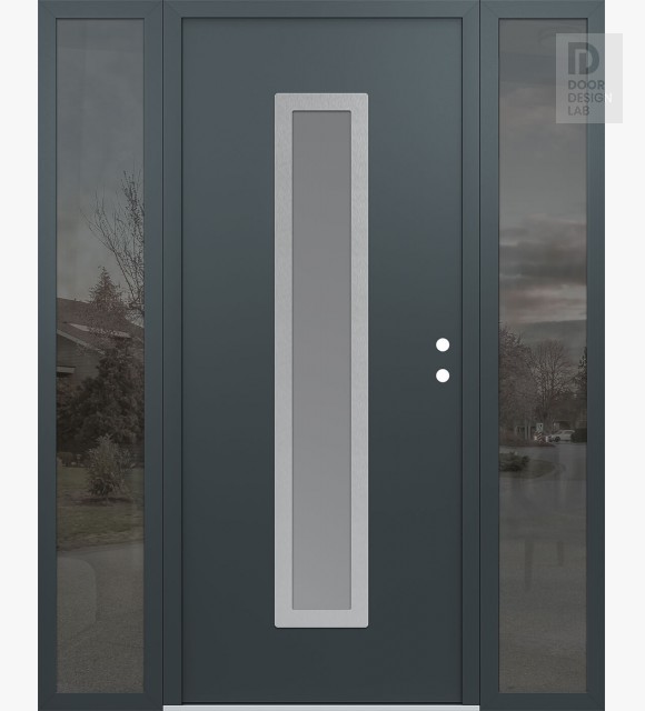 Modern Steel Front Door DIAMOND A11 60" X 80" ANTHRACITE/ANTHRACITE FROSTED GLASS PANEL STAINLESS STEEL RHI WITH 2 SIDELITES MIRRORED GLASS