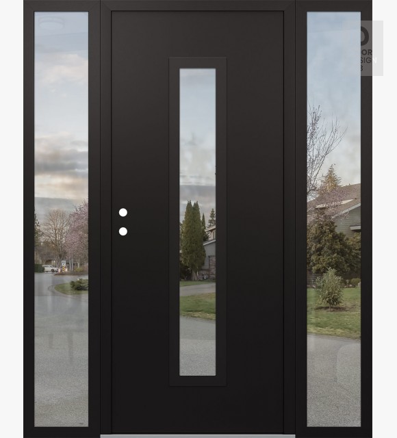 Modern Steel Front Door DIAMOND A11 60" X 80" BLACK/BLACK CLEAR GLASS PANEL BLACK LHI WITH 2 SIDELITES CLEAR GLASS