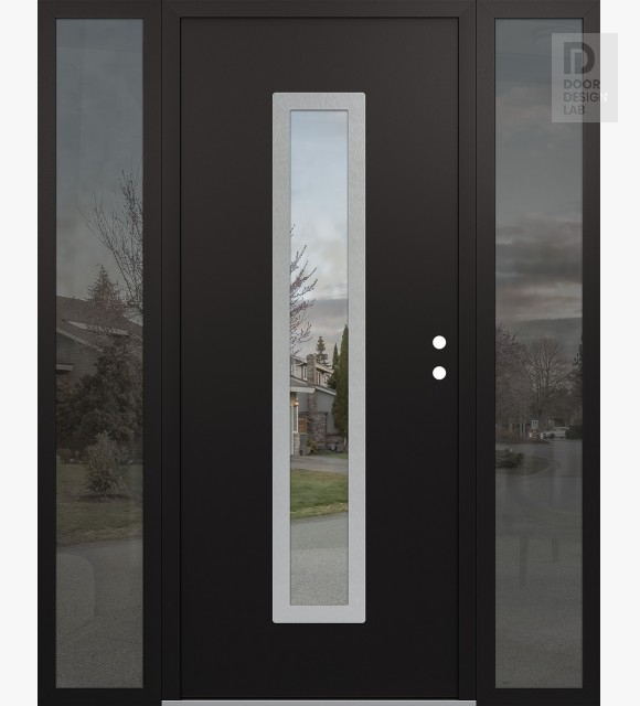 Diamond C1 60" x 96" black/black clear Glass Panel stainless steel LHI with 2 Sidelites and Transom clear Glass