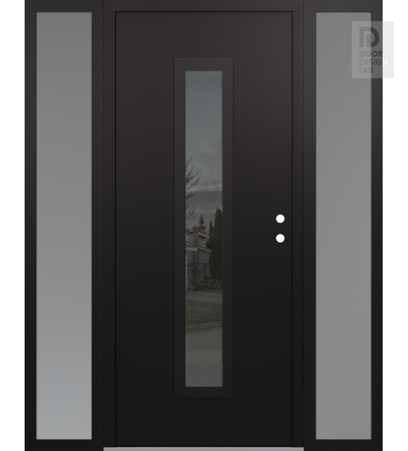 Modern Steel Front Door DIAMOND A11 60" X 80" BLACK/BLACK MIRRORED GLASS PANEL BLACK RHI WITH 2 SIDELITES FROSTED GLASS