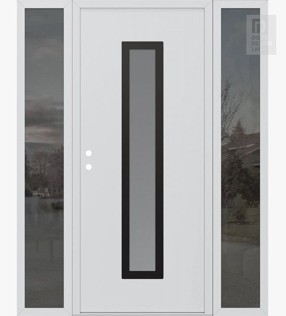 Modern Steel Front Door DIAMOND A11 60" X 80" BLACK/WHITE FROSTED GLASS PANEL BLACK LHI WITH 2 SIDELITES MIRRORED GLASS