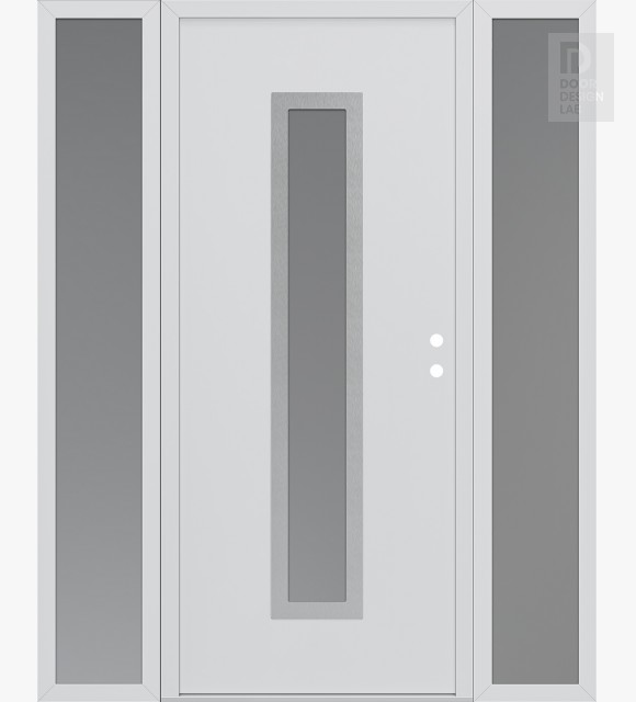 Modern Steel Front Door DIAMOND A11 60" X 80" BLACK/WHITE FROSTED GLASS PANEL STAINLESS STEEL RHI WITH 2 SIDELITES FROSTED GLASS