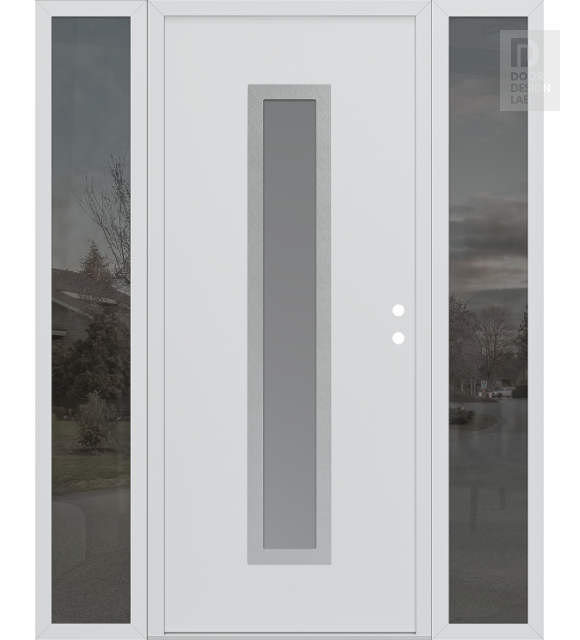 Modern Steel Front Door DIAMOND A11 60" X 80" BLACK/WHITE FROSTED GLASS PANEL STAINLESS STEEL RHI WITH 2 SIDELITES MIRRORED GLASS