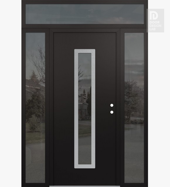 Modern Steel Front Door DIAMOND A11 60" X 96" BLACK/BLACK MIRRORED GLASS PANEL STAINLESS STEEL RHI WITH 2 SIDELITES AND TRANSOM MIRRORED GLASS