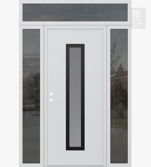 Modern Steel Front Door DIAMOND A11 60" X 96" BLACK/WHITE FROSTED GLASS PANEL BLACK LHI WITH 2 SIDELITES AND TRANSOM MIRRORED GLASS