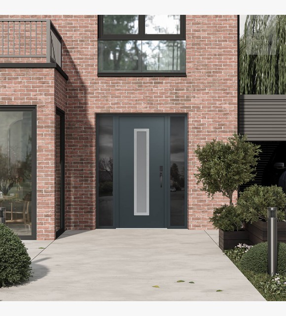 Modern Steel Front Door DIAMOND A11 64" X 80" ANTHRACITE/ANTHRACITE FROSTED GLASS PANEL STAINLESS STEEL LHI WITH 2 SIDELITES MIRRORED GLASS