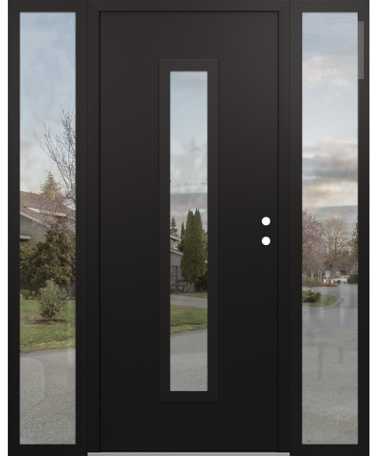 Modern Steel Front Door DIAMOND A11 64" X 80" BLACK/BLACK CLEAR GLASS PANEL BLACK RHI WITH 2 SIDELITES CLEAR GLASS