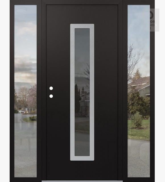 Modern Steel Front Door DIAMOND A11 64" X 80" BLACK/BLACK MIRRORED GLASS PANEL STAINLESS STEEL LHI WITH 2 SIDELITES CLEAR GLASS