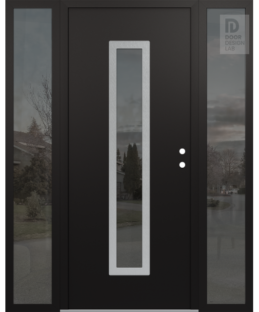 Modern Steel Front Door DIAMOND A11 64" X 80" BLACK/BLACK MIRRORED GLASS PANEL STAINLESS STEEL RHI WITH 2 SIDELITES MIRRORED GLASS