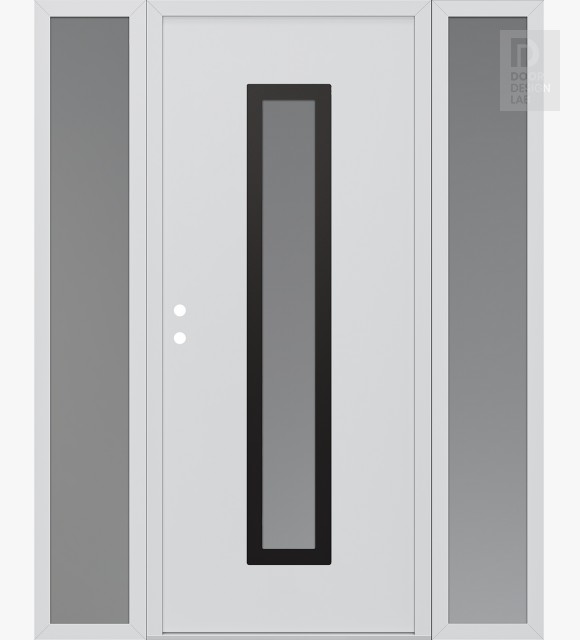 Modern Steel Front Door DIAMOND A11 64" X 80" BLACK/WHITE FROSTED GLASS PANEL BLACK LHI WITH 2 SIDELITES FROSTED GLASS