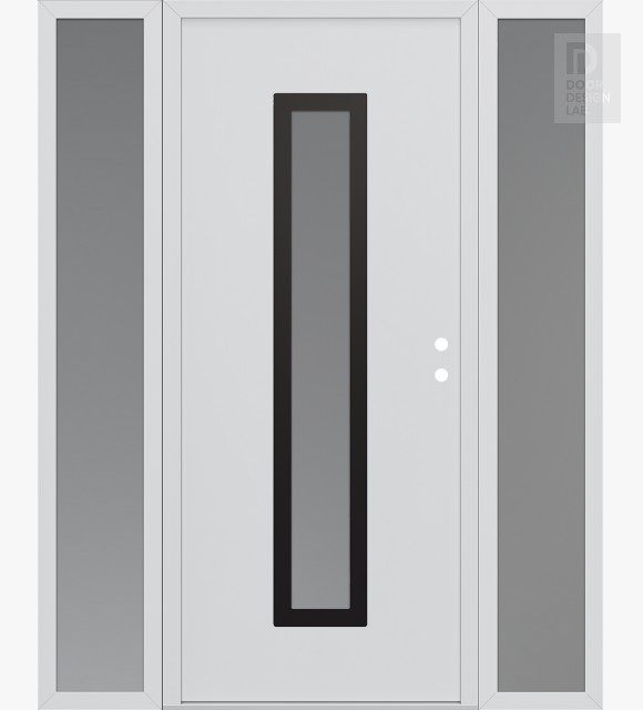 Modern Steel Front Door DIAMOND A11 64" X 80" BLACK/WHITE FROSTED GLASS PANEL BLACK RHI WITH 2 SIDELITES FROSTED GLASS