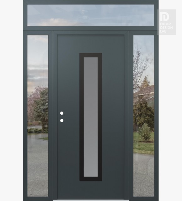 Modern Steel Front Door DIAMOND A11 64" X 96" ANTHRACITE/ANTHRACITE FROSTED GLASS PANEL BLACK LHI WITH 2 SIDELITES AND TRANSOM CLEAR GLASS