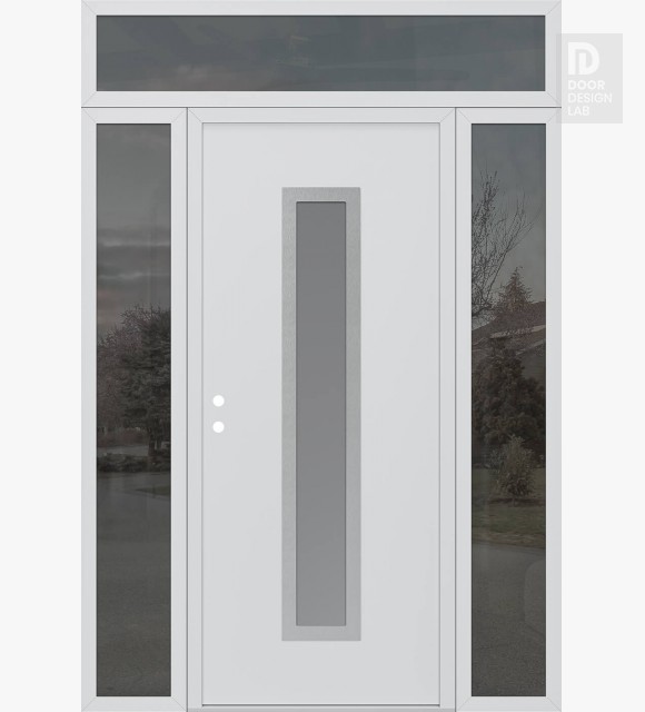 Modern Steel Front Door DIAMOND A11 64" X 96" BLACK/WHITE FROSTED GLASS PANEL STAINLESS STEEL LHI WITH 2 SIDELITES AND TRANSOM MIRRORED GLASS