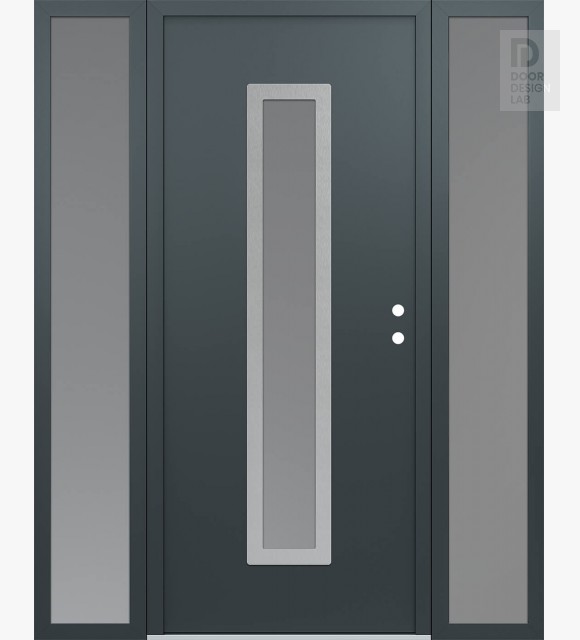 Modern Steel Front Door DIAMOND A11 68" X 80" ANTHRACITE/ANTHRACITE FROSTED GLASS PANEL STAINLESS STEEL RHI WITH 2 SIDELITES FROSTED GLASS