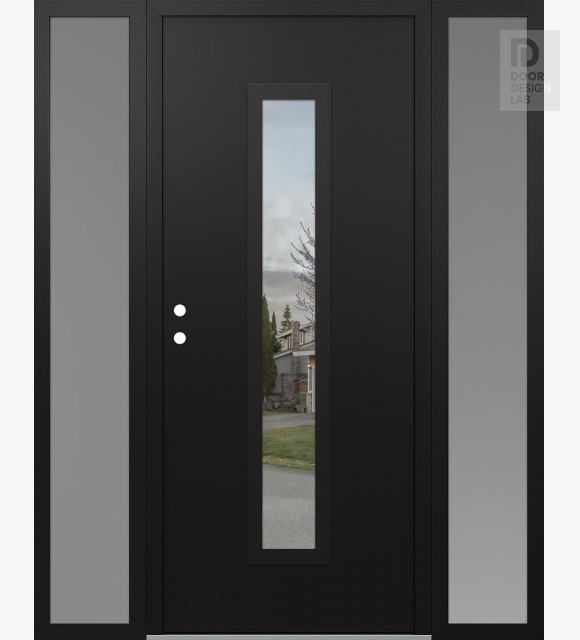 Modern Steel Front Door DIAMOND A11 68" X 80" BLACK/BLACK CLEAR GLASS PANEL BLACK LHI WITH 2 SIDELITES FROSTED GLASS