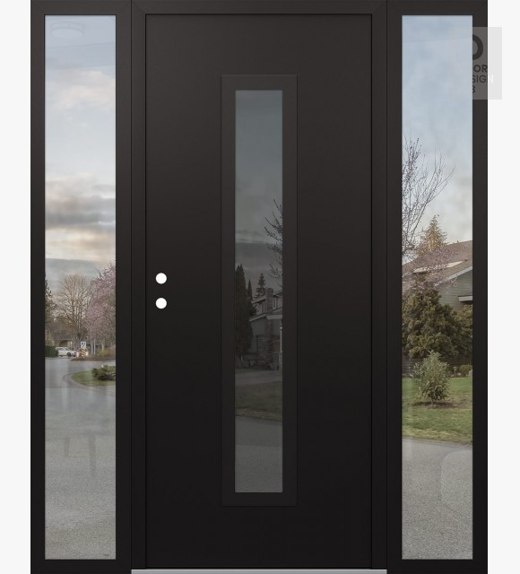 Modern Steel Front Door DIAMOND A11 68" X 80" BLACK/BLACK MIRRORED GLASS PANEL BLACK LHI WITH 2 SIDELITES CLEAR GLASS