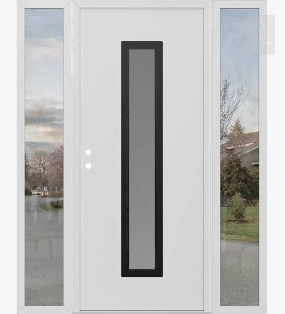 Modern Steel Front Door DIAMOND A11 68" X 80" BLACK/WHITE FROSTED GLASS PANEL BLACK LHI WITH 2 SIDELITES CLEAR GLASS