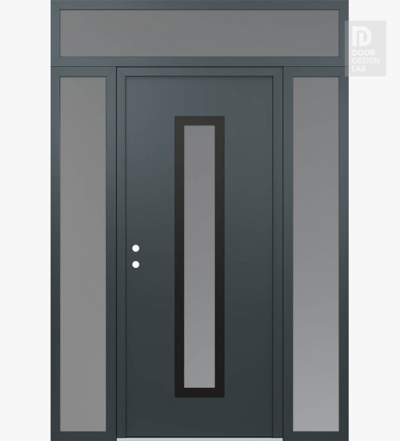 Modern Steel Front Door DIAMOND A11 68" X 96" ANTHRACITE/ANTHRACITE FROSTED GLASS PANEL BLACK LHI WITH 2 SIDELITES AND TRANSOM FROSTED GLASS