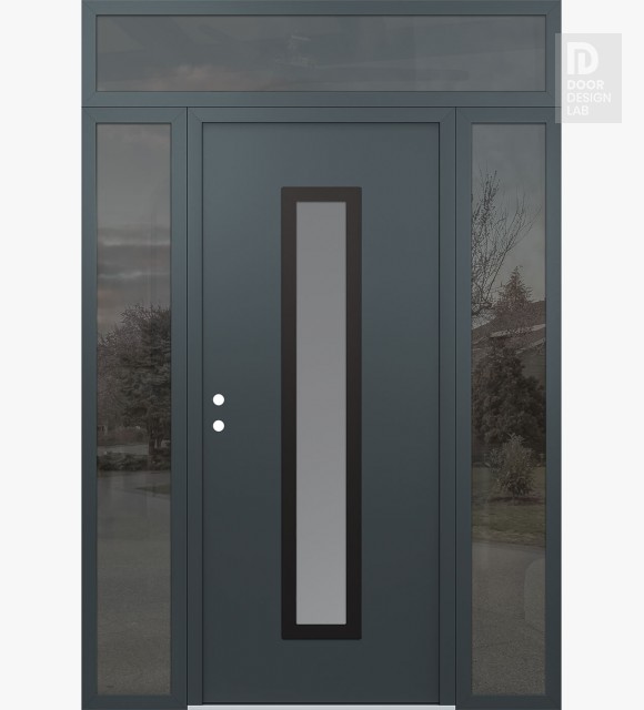 Modern Steel Front Door DIAMOND A11 68" X 96" ANTHRACITE/ANTHRACITE FROSTED GLASS PANEL BLACK LHI WITH 2 SIDELITES AND TRANSOM MIRRORED GLASS