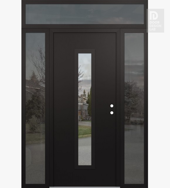 Modern Steel Front Door DIAMOND A11 68" X 96" BLACK/BLACK CLEAR GLASS PANEL BLACK RHI WITH 2 SIDELITES AND TRANSOM MIRRORED GLASS