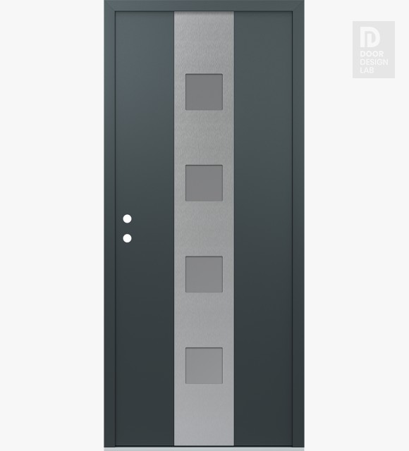 Modern Steel Front Door DIAMOND A12 36" X 80" ANTHRACITE/ANTHRACITE FROSTED GLASS PANEL STAINLESS STEEL LHI