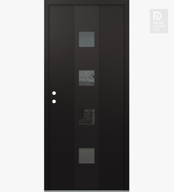 Modern Steel Front Door DIAMOND A12 36" X 80" BLACK/BLACK MIRRORED GLASS PANEL BLACK LHI