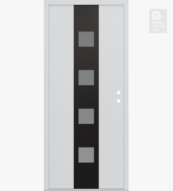 Modern Steel Front Door DIAMOND A12 36" X 80" BLACK/WHITE FROSTED GLASS PANEL BLACK RHI
