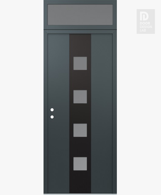 Modern Steel Front Door DIAMOND A12 36" X 96" ANTHRACITE/ANTHRACITE FROSTED GLASS PANEL BLACK LHI WITH TRANSOM FROSTED GLASS