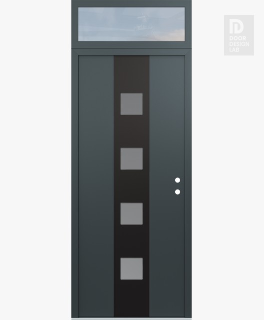Modern Steel Front Door DIAMOND A12 36" X 96" ANTHRACITE/ANTHRACITE FROSTED GLASS PANEL BLACK RHI WITH TRANSOM CLEAR GLASS