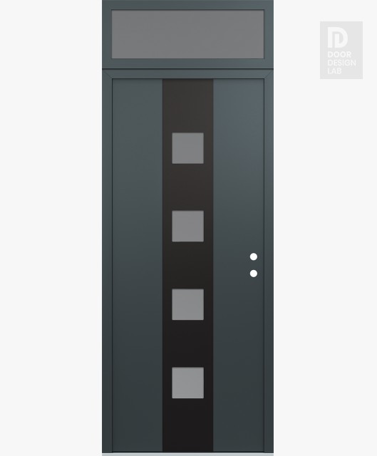 Modern Steel Front Door DIAMOND A12 36" X 96" ANTHRACITE/ANTHRACITE FROSTED GLASS PANEL BLACK RHI WITH TRANSOM FROSTED GLASS