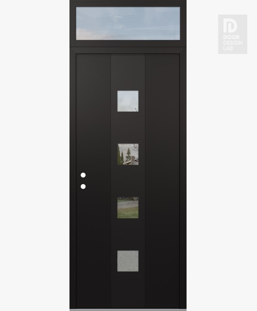 Modern Steel Front Door DIAMOND A12 36" X 96" BLACK/BLACK CLEAR GLASS PANEL BLACK LHI WITH TRANSOM CLEAR GLASS