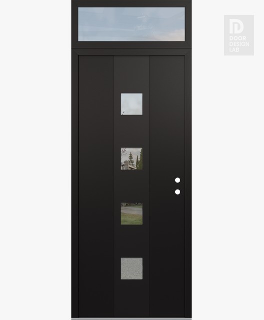 Modern Steel Front Door DIAMOND A12 36" X 96" BLACK/BLACK CLEAR GLASS PANEL BLACK RHI WITH TRANSOM CLEAR GLASS