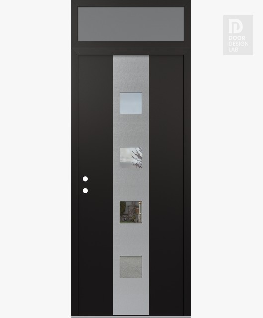 Modern Steel Front Door DIAMOND A12 36" X 96" BLACK/BLACK CLEAR GLASS PANEL STAINLESS STEEL LHI WITH TRANSOM FROSTED GLASS