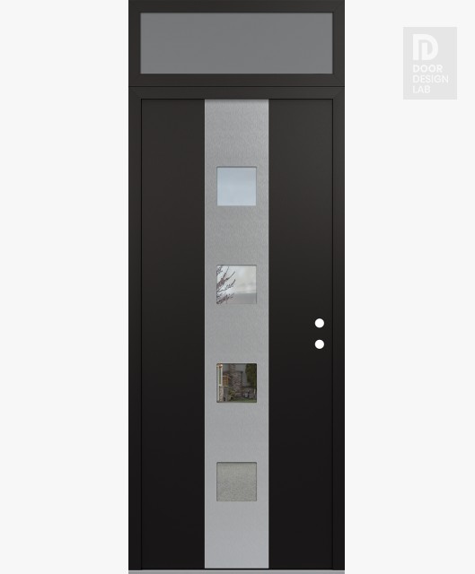 Modern Steel Front Door DIAMOND A12 36" X 96" BLACK/BLACK CLEAR GLASS PANEL STAINLESS STEEL RHI WITH TRANSOM FROSTED GLASS
