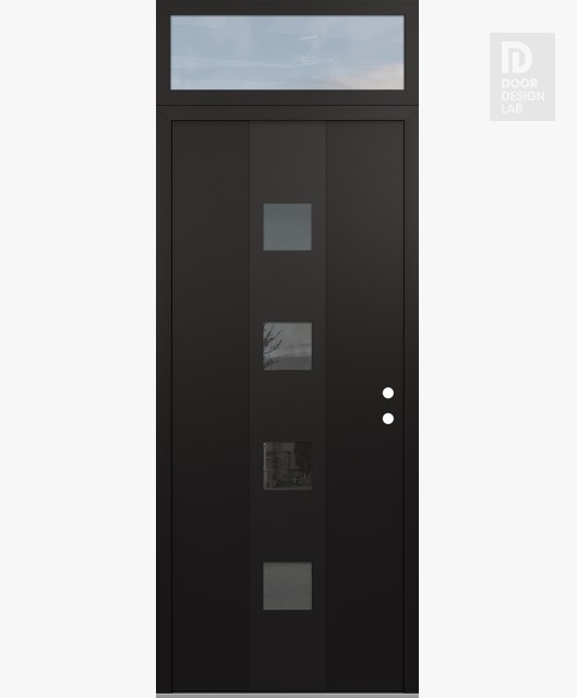 Modern Steel Front Door DIAMOND A12 36" X 96" BLACK/BLACK MIRRORED GLASS PANEL BLACK RHI WITH TRANSOM CLEAR GLASS