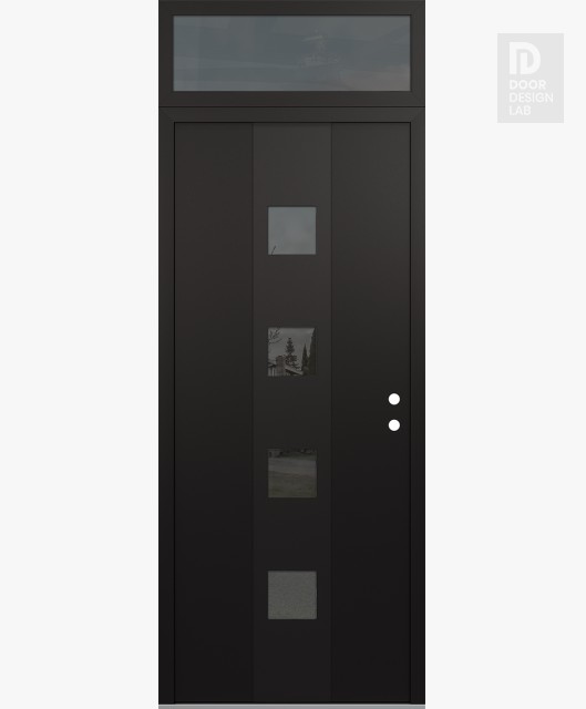 Modern Steel Front Door DIAMOND A12 36" X 96" BLACK/BLACK MIRRORED GLASS PANEL BLACK RHI WITH TRANSOM MIRRORED GLASS