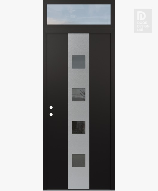 Modern Steel Front Door DIAMOND A12 36" X 96" BLACK/BLACK MIRRORED GLASS PANEL STAINLESS STEEL LHI WITH TRANSOM CLEAR GLASS