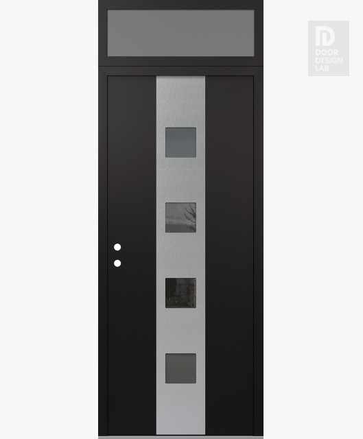 Modern Steel Front Door DIAMOND A12 36" X 96" BLACK/BLACK MIRRORED GLASS PANEL STAINLESS STEEL LHI WITH TRANSOM FROSTED GLASS