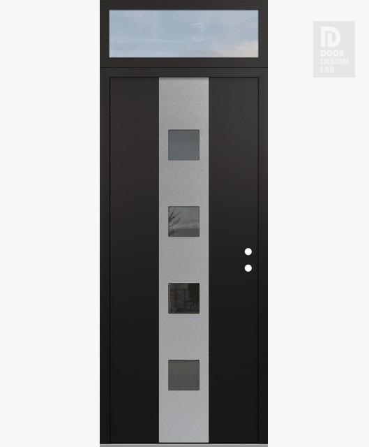 Modern Steel Front Door DIAMOND A12 36" X 96" BLACK/BLACK MIRRORED GLASS PANEL STAINLESS STEEL RHI WITH TRANSOM CLEAR GLASS