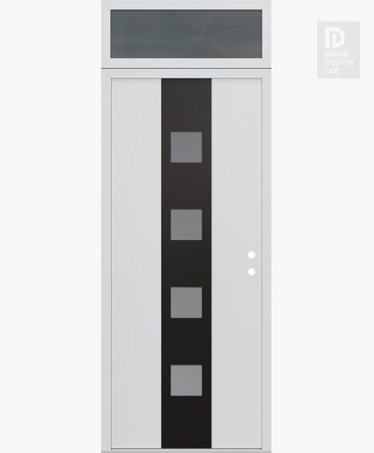 Modern Steel Front Door DIAMOND A12 36" X 96" BLACK/WHITE FROSTED GLASS PANEL BLACK RHI WITH TRANSOM MIRRORED GLASS
