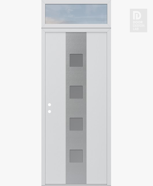 Modern Steel Front Door DIAMOND A12 36" X 96" BLACK/WHITE FROSTED GLASS PANEL STAINLESS STEEL LHI WITH TRANSOM CLEAR GLASS