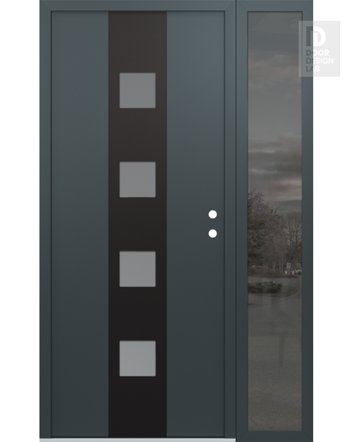 Modern Steel Front Door DIAMOND A12 48" X 80" ANTHRACITE/ANTHRACITE FROSTED GLASS PANEL BLACK RHI WITH SIDELITE MIRRORED GLASS