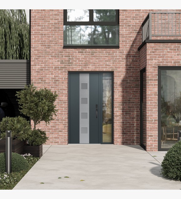 Modern Steel Front Door DIAMOND A12 48" X 80" ANTHRACITE/ANTHRACITE FROSTED GLASS PANEL STAINLESS STEEL LHI WITH SIDELITE CLEAR GLASS