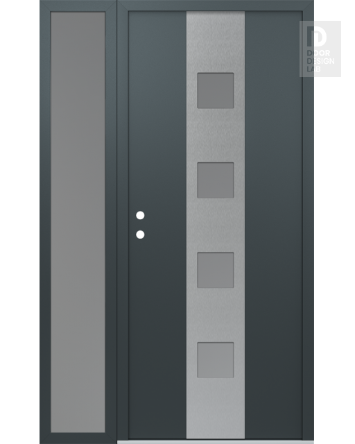 Modern Steel Front Door DIAMOND A12 48" X 80" ANTHRACITE/ANTHRACITE FROSTED GLASS PANEL STAINLESS STEEL LHI WITH SIDELITE FROSTED GLASS