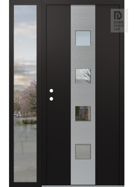 Modern Steel Front Door DIAMOND A12 48" X 80" BLACK/BLACK CLEAR GLASS PANEL STAINLESS STEEL LHI WITH SIDELITE CLEAR GLASS